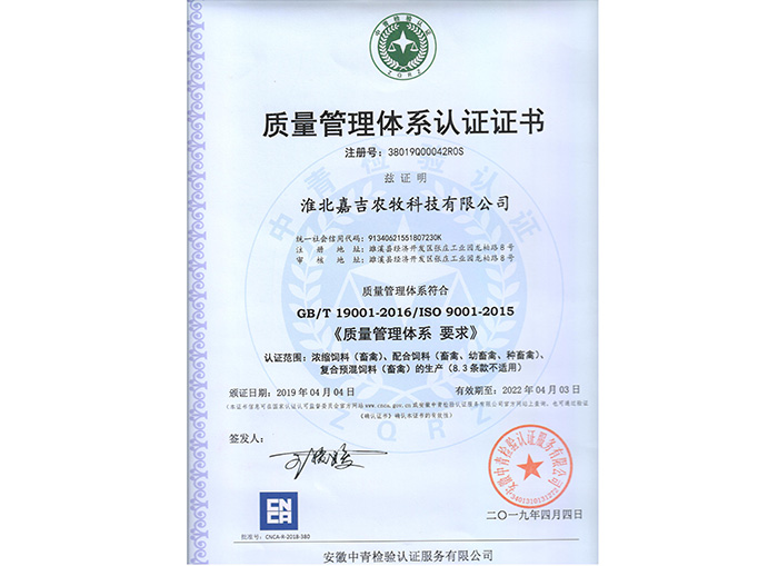 質(zhì)理認證證書