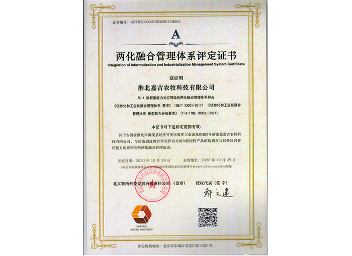 兩化融合管理體系評定證書
